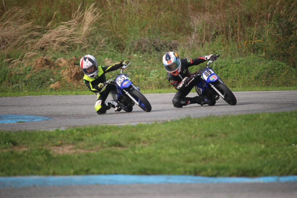 Édesapja, Sas Tibor, az előbb a garázsban már ugyanilyen alapos hozzáállással, töviről hegyire elmagyarázta a 6–10 éves korosztály motortípusának tudnivalóit. Alapos bevezetőt, igazi technikaórát kaptunk az 50 cm3-es kategória Yamaha PW-jéből, amiből rögtön 2 kell ám egy sportolónak. Edzeni és versenyezni. És mert a komoly ifjú, Botond épp elmúlt 10, párhuzamosan belekóstolt a 110 cm3-es kategóriába is.