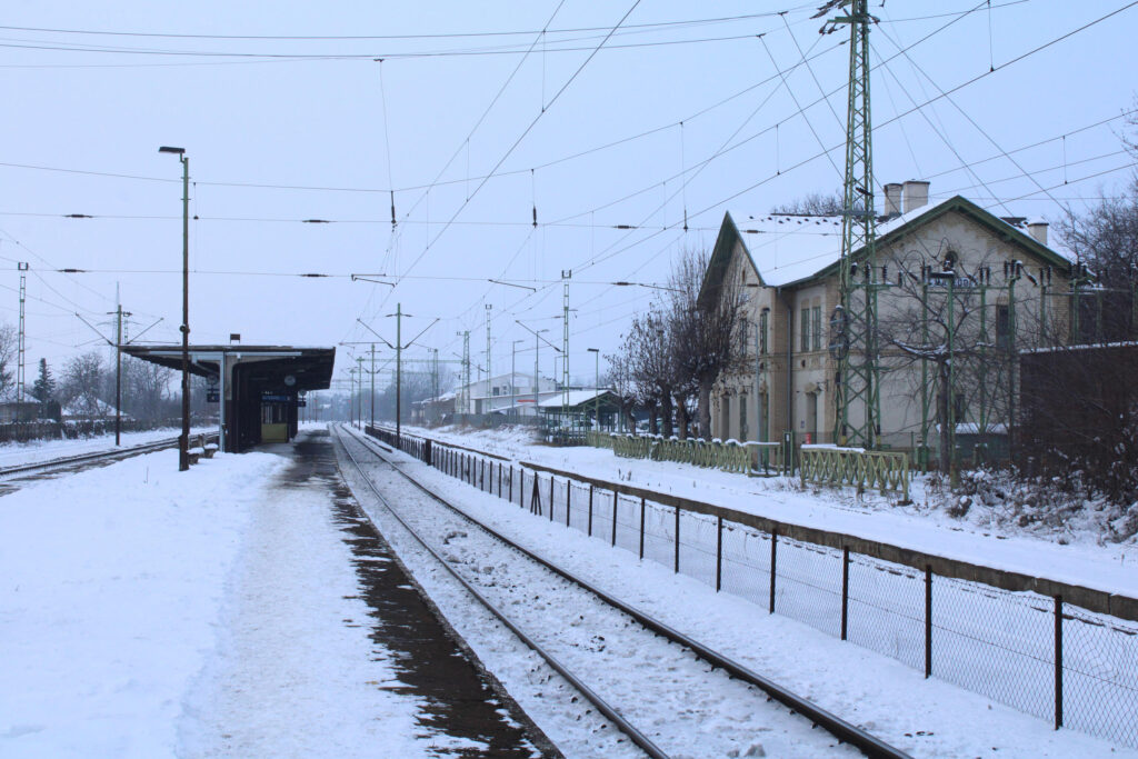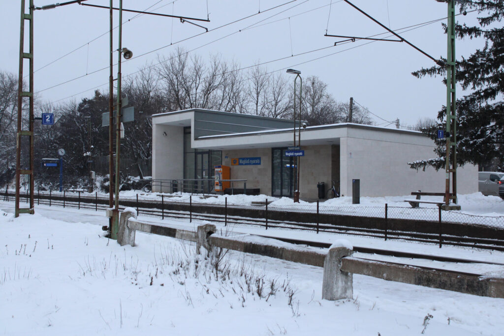 A Maglód nyaraló vasúti megállóhely január 9-én, a peronon éppen nincsenek sokan,