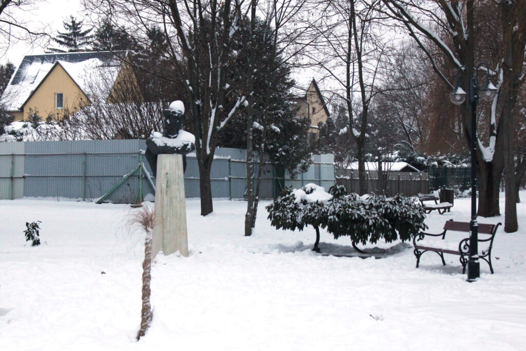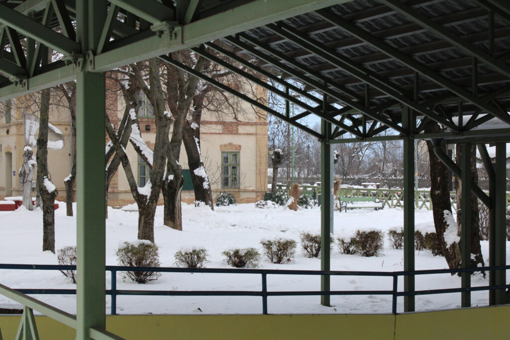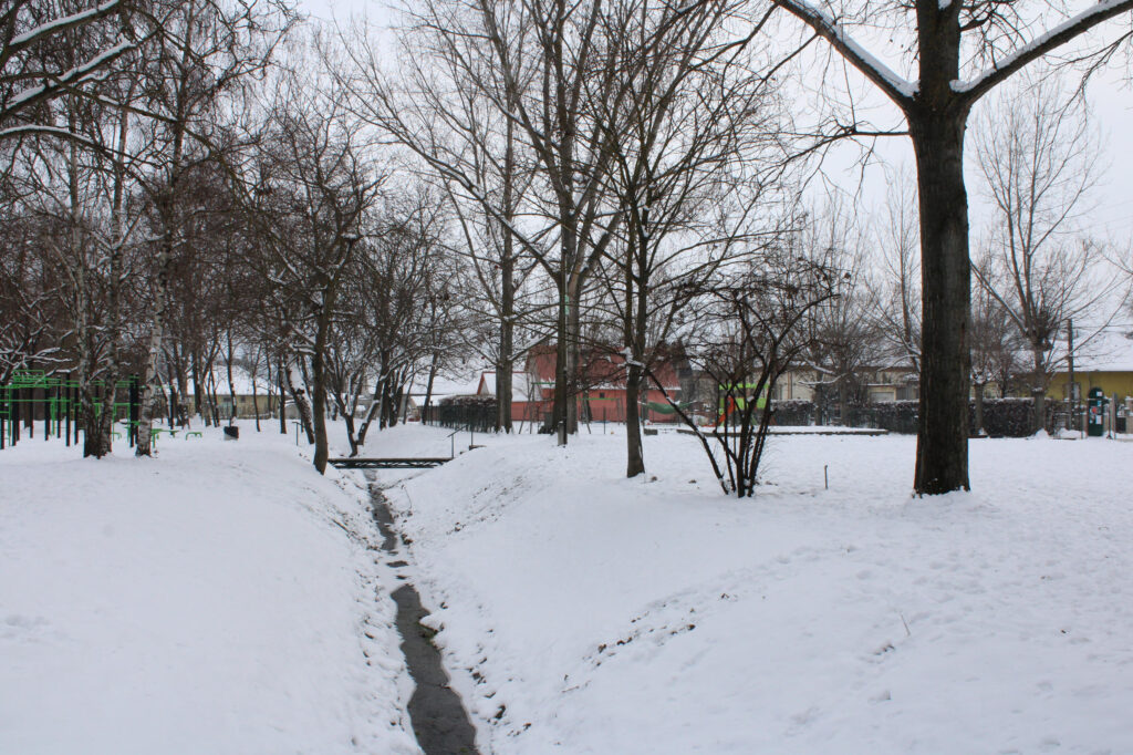 Árpád vezér őrzi az üres, hóval fedett parkot