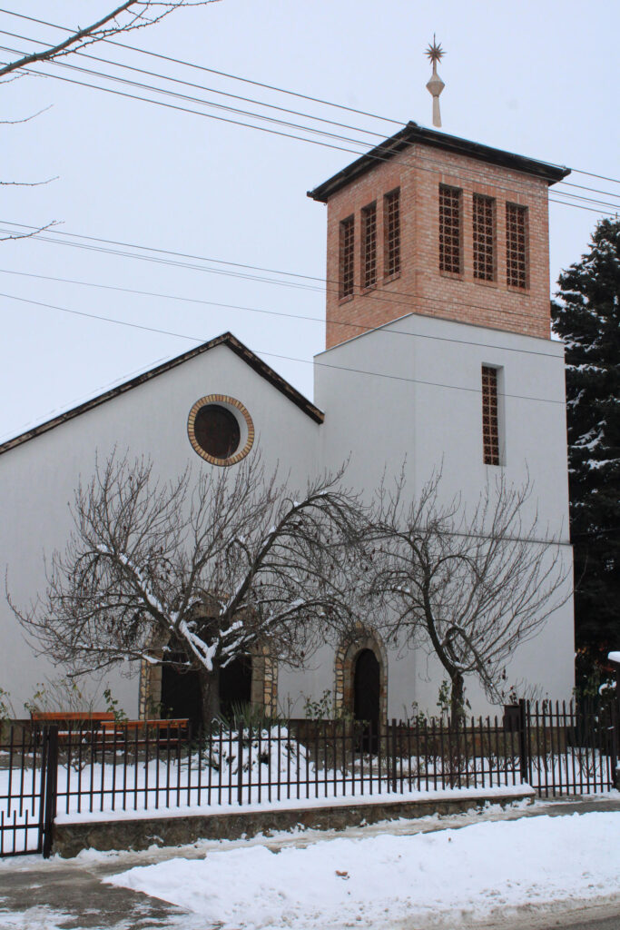 A címképen a Szent István tér január 9-én, délután, ott a háttérben a Rózsafüzér királynője templom és