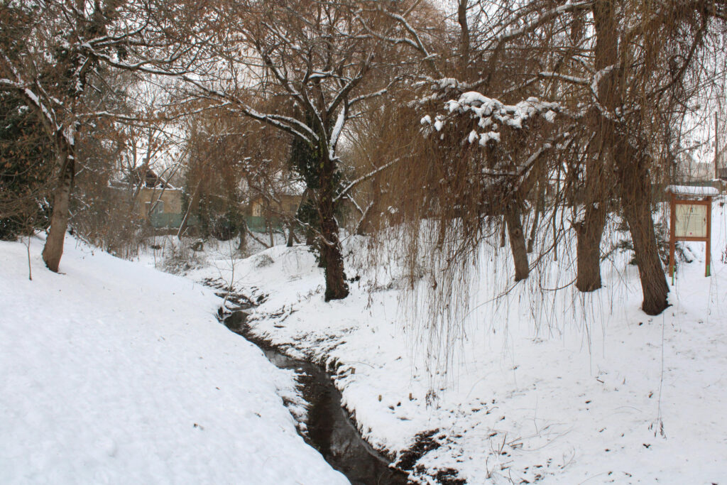 A patakpart január 10-én, balra a szabadtéri edzőterem,