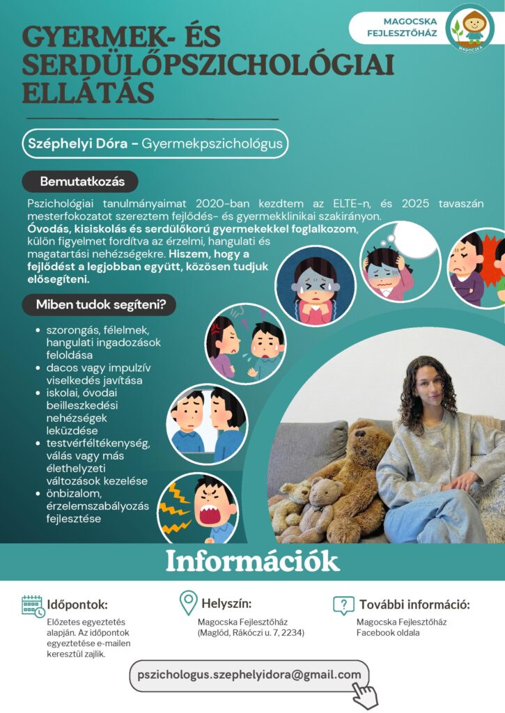 „Amikor friss diplomás pszichológusként a környéken szerettem volna elhelyezkedni, meglepetten tapasztaltam, hogy Maglódon nem volt elérhető gyermek- és serdülőpszichológiai ellátás. Pedig úgy gondolom, hogy ez olyan alapvető szolgáltatás, amelynek minden gyermek, szülő és család számára hozzáférhetőnek kellene lennie. Ezért is hatalmas megtiszteltetés számomra, hogy Maglódon az elsők között lehetek azoknak a szakembereknek a körében, akik ezt a hiányt pótolva a helyi és a környékbeli családok támogatásán dolgozhatnak” – mondja Széphelyi Dóra.
