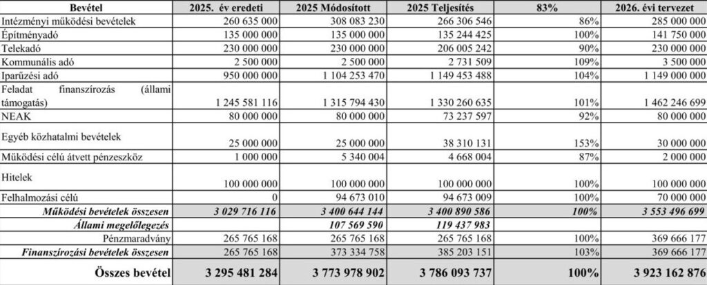Némileg ezzel párhuzamosan az állami támogatások úgy alakulnak, hogy a jelentős bérnövekedés és többletelvonás ellenére a 2025. és 2026. évi terv közötti különbség mintegy +215 M Ft lesz.