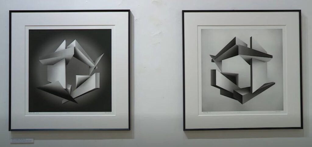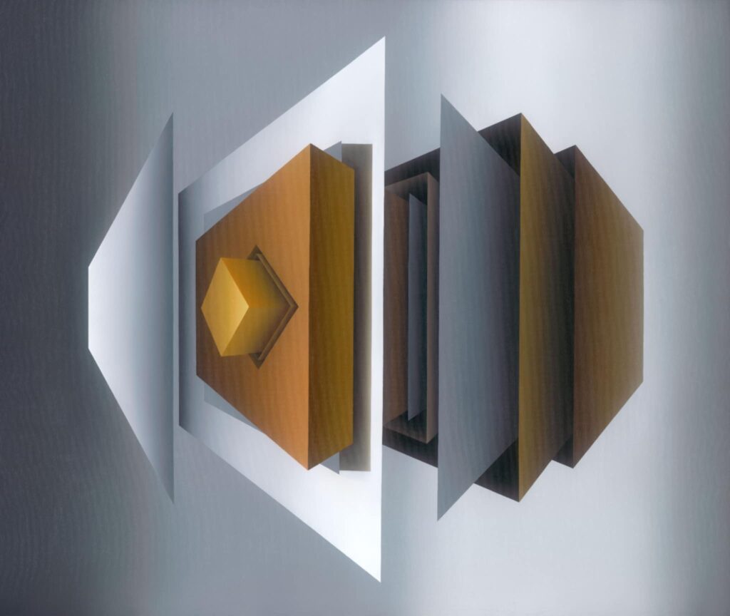 – A geometria a világ váza. Ha a váz stabil és tiszta, bármilyen érzelmet vagy szakrális tartalmat képes megtartani. Szerintem ez olyan egyetemes nyelv, amelyen keresztül mindenkihez lehet szólni. Ugyanakkor azt is fontos megérteni, hogy egy adott forma nem ugyanazt jelenti mindenki számára. Van, akinek a téglatest egy másik formába beékelődve pusztán ábrázoló geometria, szerkesztési „bravúr”, ha úgy tetszik – míg másoknak annak a leképeződése, hogy hordozzuk, cipeljük életünk terheit, sérelmeit, és ezek gátolnak bennünket a továbblépésben. Számomra mindkét olvasat rendben van. Nem rákényszeríteni szándékozom a nézőt, hogy azt lássa, amit én igyekeztem beletenni a képbe, azt szeretném, találja meg benne a maga szubjektív olvasatát.