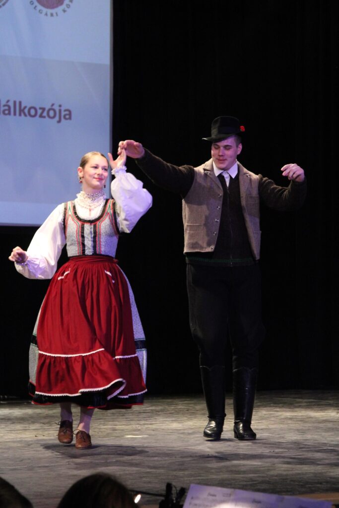 Farkas László Berci és Szélpál Bajtai Éva, a Kacamjka Városi Néptáncegyüttes művészeti vezetői szólótánccal léptek fel,